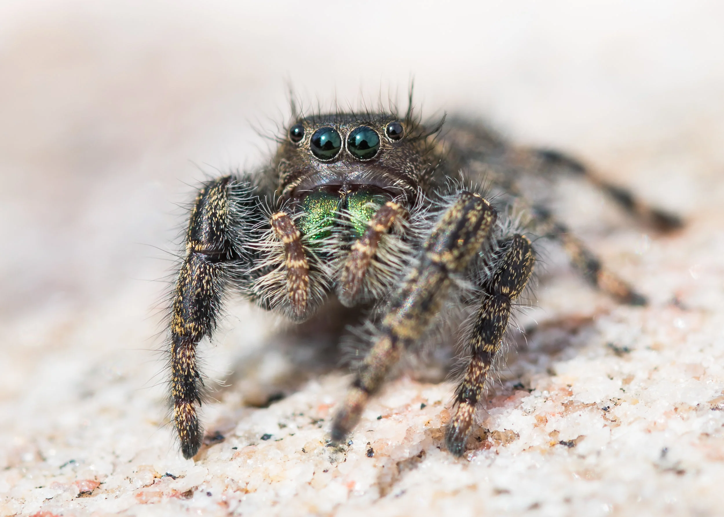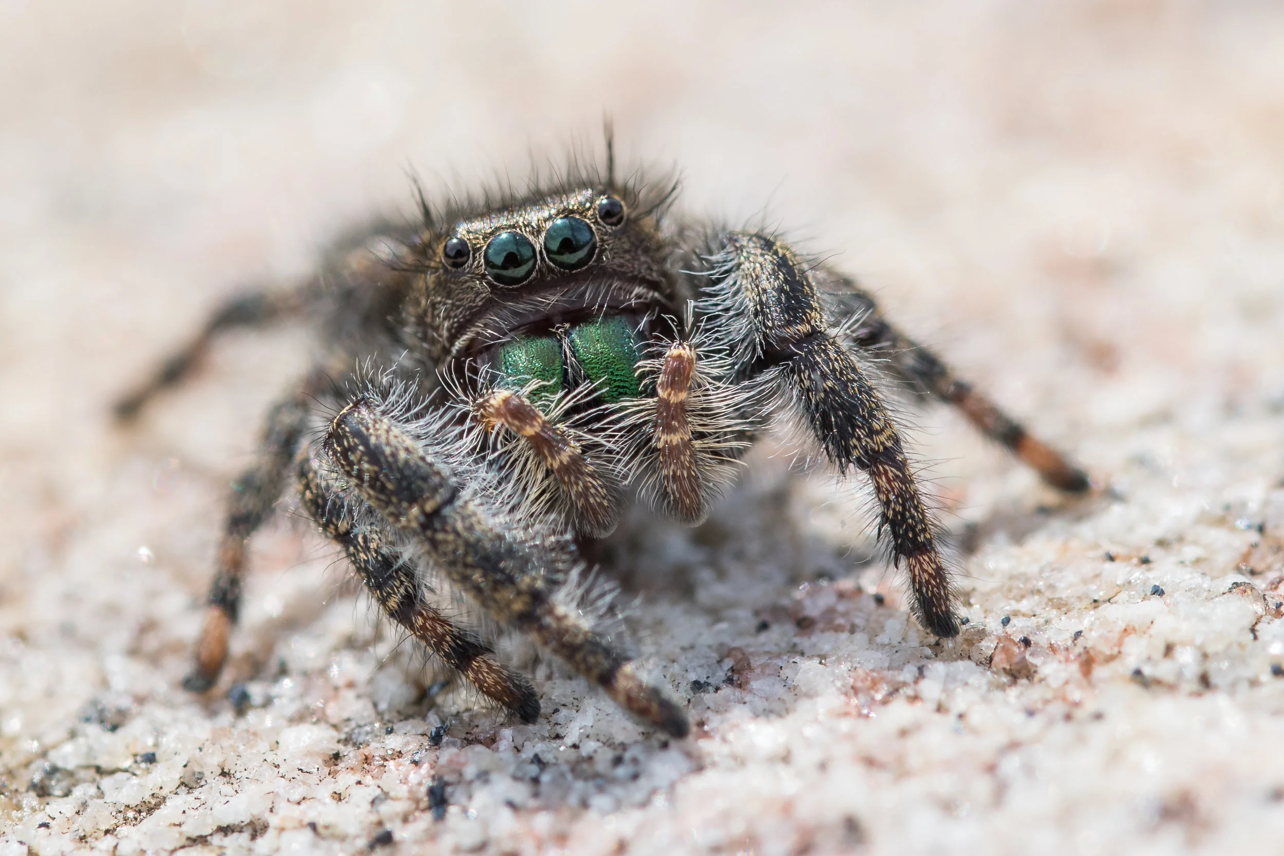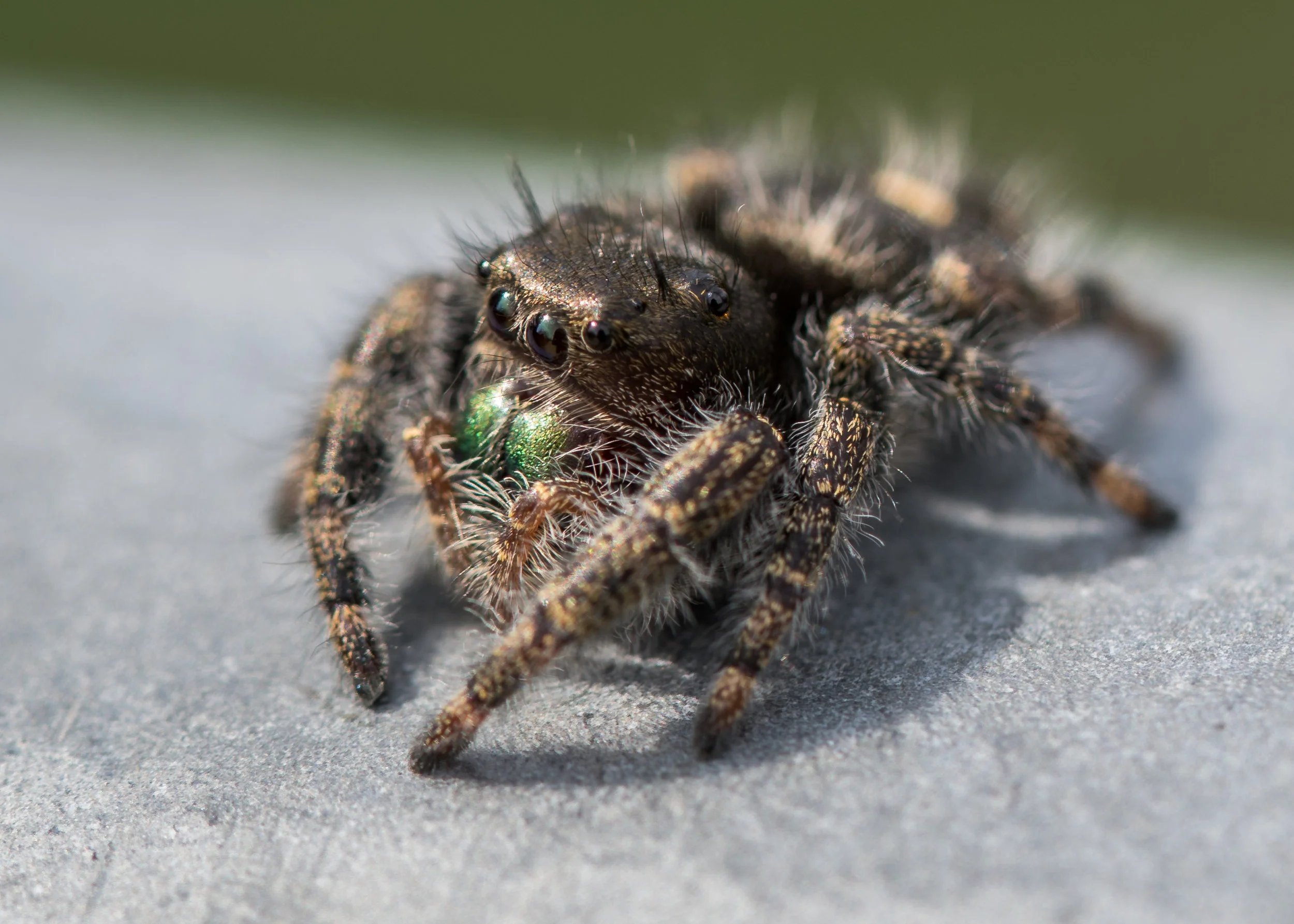 Testing a newer lens on a new camera, it's nearly impossible to tell what was working - but this combination worked very well together. Here are some sample images of a jumping spider. All the images are single-frame shots (no stacking.)