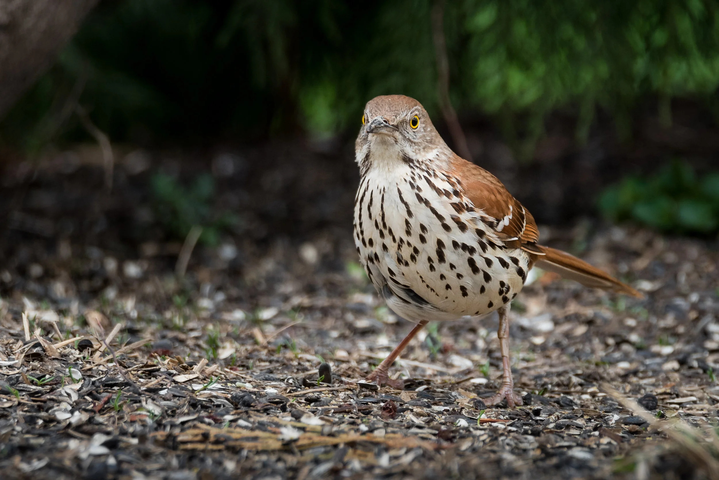 New species at the house today - the first time we've seen a Brown Thrasher visit. Very busy bird day at the house today with over 24 species.